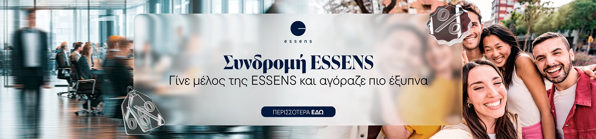 Η ESSENS συνδυάζει την αξεπέραστη ποιότητα με τη σύγχρονη καινοτομία.Ανακαλύψτε τα πολυτελή αρώματα μας, γεμάτα με έντονα αρωματικά αποστάγματα, φυσικά καλλυντικά που φροντίζουν την επιδερμίδα σας, συμπληρώματα διατροφής που ενισχύουν την υγεία και ενέργειά σας, καθώς και προϊόντα οικιακής χρήσης που απλοποιούν την καθημερινότητα.Ελάτε στην ομάδα μας και προσφέρετε στους πελάτες σας τα καλύτερα προϊόντα της αγοράς!